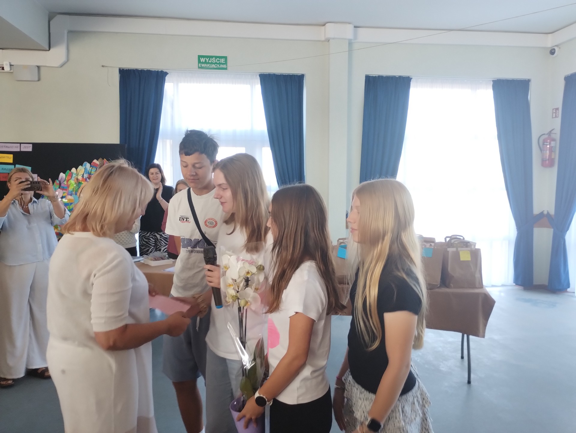 Dzisiaj odbył się apel podsumowujący pracę w roku szkolnym 2024/2025, w trakcie którego dyrekcja szkoły, grono pedagogiczne oraz społeczność uczniowska pożegnali panią Brygidę Surmacz- pielęgniarkę, która z sercem i oddaniem służyła nam swoją wiedzą i pomocą przez długie lata. Uczniowie wyrazili swą wdzięczność życzeniami i kwiatami.
