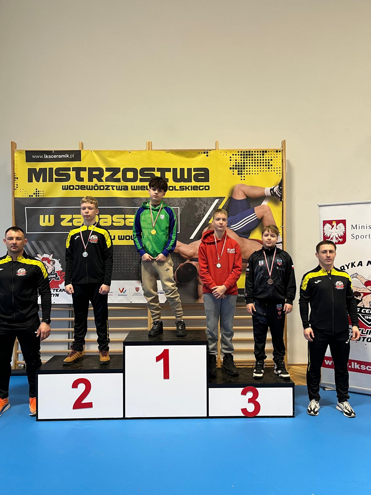 Po kilku miesiącach pauzy od rywalizacji w zawodach spowodowanej kontuzją nasz kolega Aleksander Jankowiak z klasy 7b wrócił do aktywnosci sportowej. W miniony weekend najlepsi zapaśnicy stylu wolnego z naszego województwa spotkali się na corocznych Mistrzostwach Wielkopolski w Krotoszynie. Alek stawił się dobrze przygotowany i w bardzo dobrym stylu zajął pierwsze miejsce w swojej kategorii.